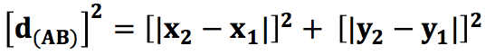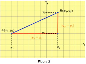 la distancia entre los puntos A y B es la longitud de la hipotenusa del triángulo. Empleando el teorema de Pitágoras que dice "En todo triangulo rectángulo el cuadrado de la hipotenusa es igual a la suma de los cuadrados de los catetos", por lo que se obtiene lo siguiente: